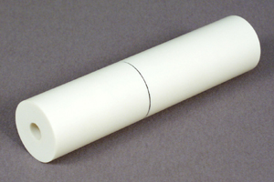 The Mini-phantom consists of a cylinder, 4cm in diameter, 17.5cm long, made of water-equivalent Plastic Water®. An alignment groove scribed at 10cm serves to indicate the isocenter and coincides with the ion chamber reference point. The standard chamber cavity, parallel to the phantom axis, is for the classic Farmer-type chamber, but it can be made for any commercially-available cylindrical chamber at no additional cost. The Mini-phantom may be used with the CNMC Model AL-CSSP chamber stand equipped with a special vertical adaptor or any suitable chamber stand that allows vertical chamber orientation.