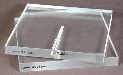 Acrylic phantom material is a clear plastic with the chemical formula (C-5/H-8/O-2)n, polymethylmethacrylate (PMMA). It is also known under the trade names Lucite, Plexiglas and Perspex. Acrylic has a density of 1.185g/cm³. It is available in 25 x 25cm sections of varying thickness.