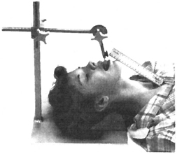 accomplished using 15cm scales and two locking knobs. The bite block tray angle is adjustable using a 180°