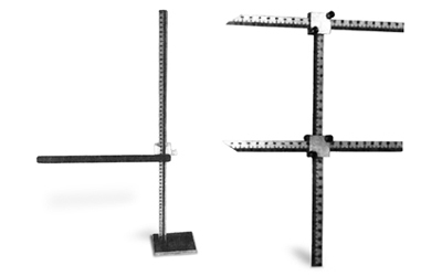 The head-neck caliper is useful in measurements of either patient diameters or surface-to-tumor depths. The depth of a tumor or intraoral structure relative to either the lateral or anterior/ posterior surfaces can be easily determined. Vertical adjustment is 23cm, horizontal adjustment is 26cm.